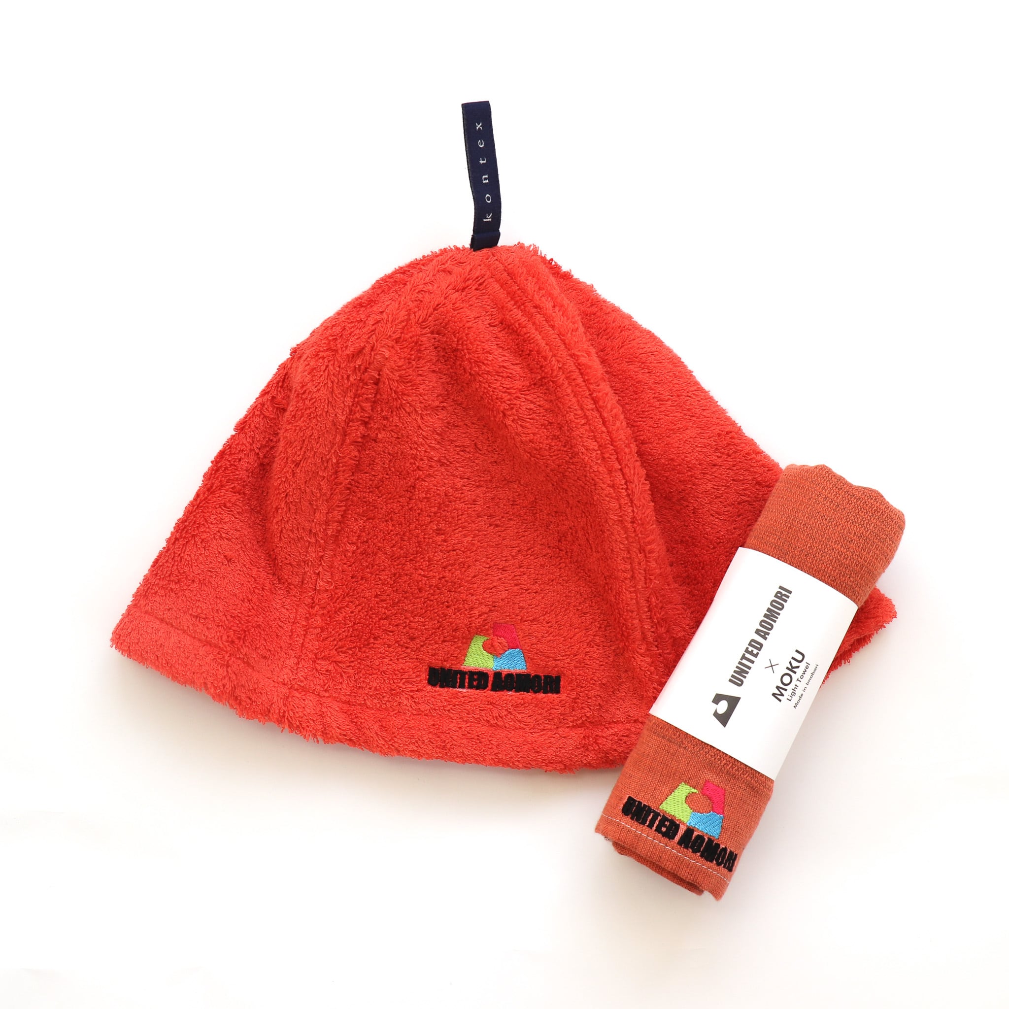 UNITED AOMORIオリジナル「サウナハット POCKET」と「MOKU タオル」。